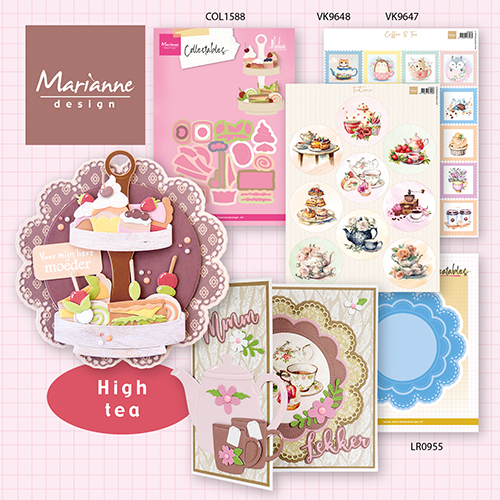 Binnen dit thema wordt mooi verder gebouwd op het papier van Magical Garden, dat perfect aansluit bij het idee van Thee voor 2. Marleen ontwierp opnieuw een aantal mooie Collectables, waaronder allerlei lekkers voor een high tea, een grote kop en schotel en een grote cupcake als Craft Stencil. Daarmee kun je veel verschillende kanten op, van speelse kaarten tot originele decoratieve accenten.