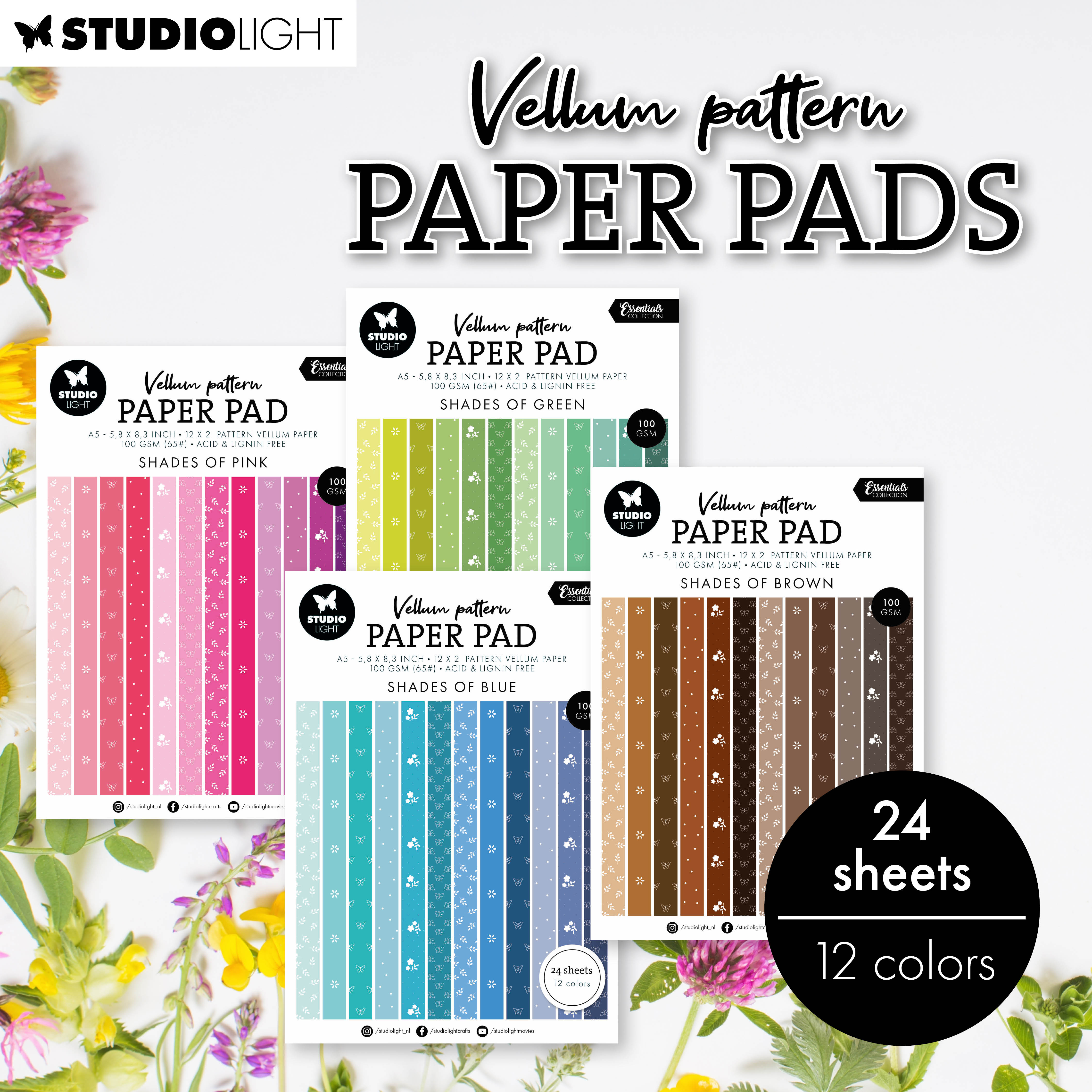 Daarnaast zijn er vellum pattern paper pads met diverse prints en kleuren. Deze transparante vellen geven extra diepte en een verfijnde uitstraling aan kaarten en andere projecten.