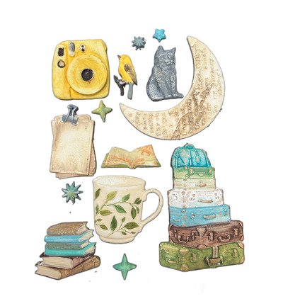 Gebruik de mal voor het maken van losse embellishments die je op dagboeken, kistjes of albumpagina's kunt aanbrengen. Combineer de gegoten elementen met de Secret Diary stencils en ephemera voor een rijk gedecoreerd project. Handig voor wie een volledig thematische, handgemaakte uitstraling wil bereiken binnen de Secret Diary-collectie.