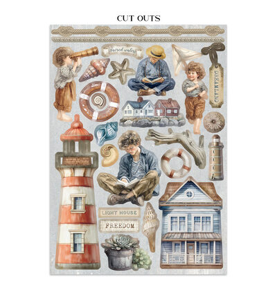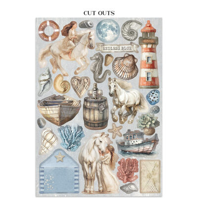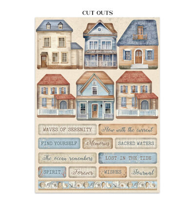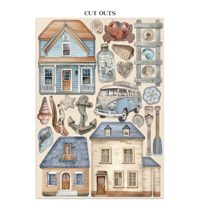 Gebruik de cardstockvellen als albumachtergrond, de stickers voor titelpagina's en de cut-outs als losse embellishments op herinneringsboeken en kaarten. Combineer het pakket met bijpassende stencils of rijstpapier voor een serene oceaansfeer in je project. Ideaal voor strandherinneringen en albums met een rustgevend, maritiem thema.