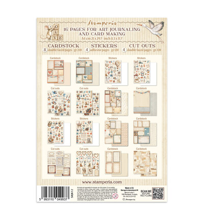 Dit junk journal uit de Baby-collectie bevat 16 pagina's voor art journaling en card making: 8 dubbelzijdige cardstockvellen (220 gr), 4 stickerbladen (120 gr) en 4 dubbelzijdige cut-outvellen (220 gr). De lieve babymotieven — wiegjes, speelgoed, voetafdrukjes en kinderkamer-accenten — zijn op alle materialen doorgevoerd.