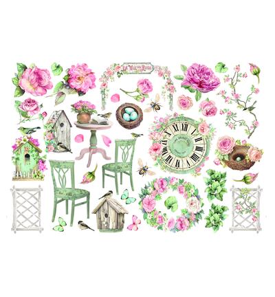 Deze ephemera uit de House of Roses-collectie bevat zelfklevende of losse decoratieve elementen voor gelaagde composities. De sfeer van House of Roses ademt romantische tuin, zachte vintage elegantie, rozen, hekwerken, vogels en botanische ornamenten.
