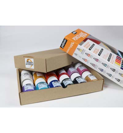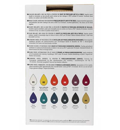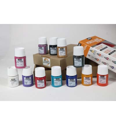 Porcelaine 150 exploration set - gloss 12 x 20 ml #1 : ivory, Marseille yellow, agate orange, scarlet, opaline pink, fuchsia, parma, turquoise blue, sapphire, bronze, anthracite black, gold