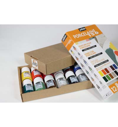 Porcelaine 150 exploration set - gloss 12 x 20 ml #2 : citrine yellow, coral, ruby, tender pink, Etruscan red, Ming blue, emerald, malachite green, amber, taupe, anthracite black, shimmer silver