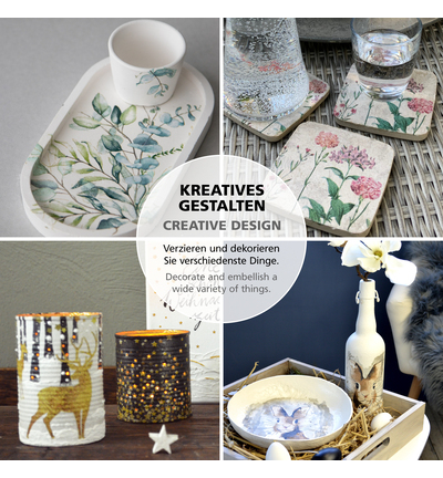 Place the most beautiful decoupage motifs with the Viva Decor Decoupage technique-paint on a clay pot, a ceramic vase, a wooden frame or just on a nice cardboard box, as a personal gift packaging. Napkin-Decoupage-Lacquer is a transparent varnish suitable both as a glue and as a finish.